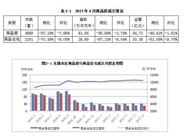 2017年6月,无锡市区商品房供应量环比增长明显,成交平稳,房地产调控效应逐步显现,二手房成交量进一步回落。下面为本月我市房地产市场具体情况: