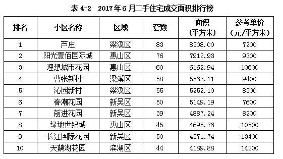 1-6月无锡市区二手房成交面积427.34万平方米,同比增长38.80%,其中二手住宅成交面积为391.39万平方米,同比增长56.91%。